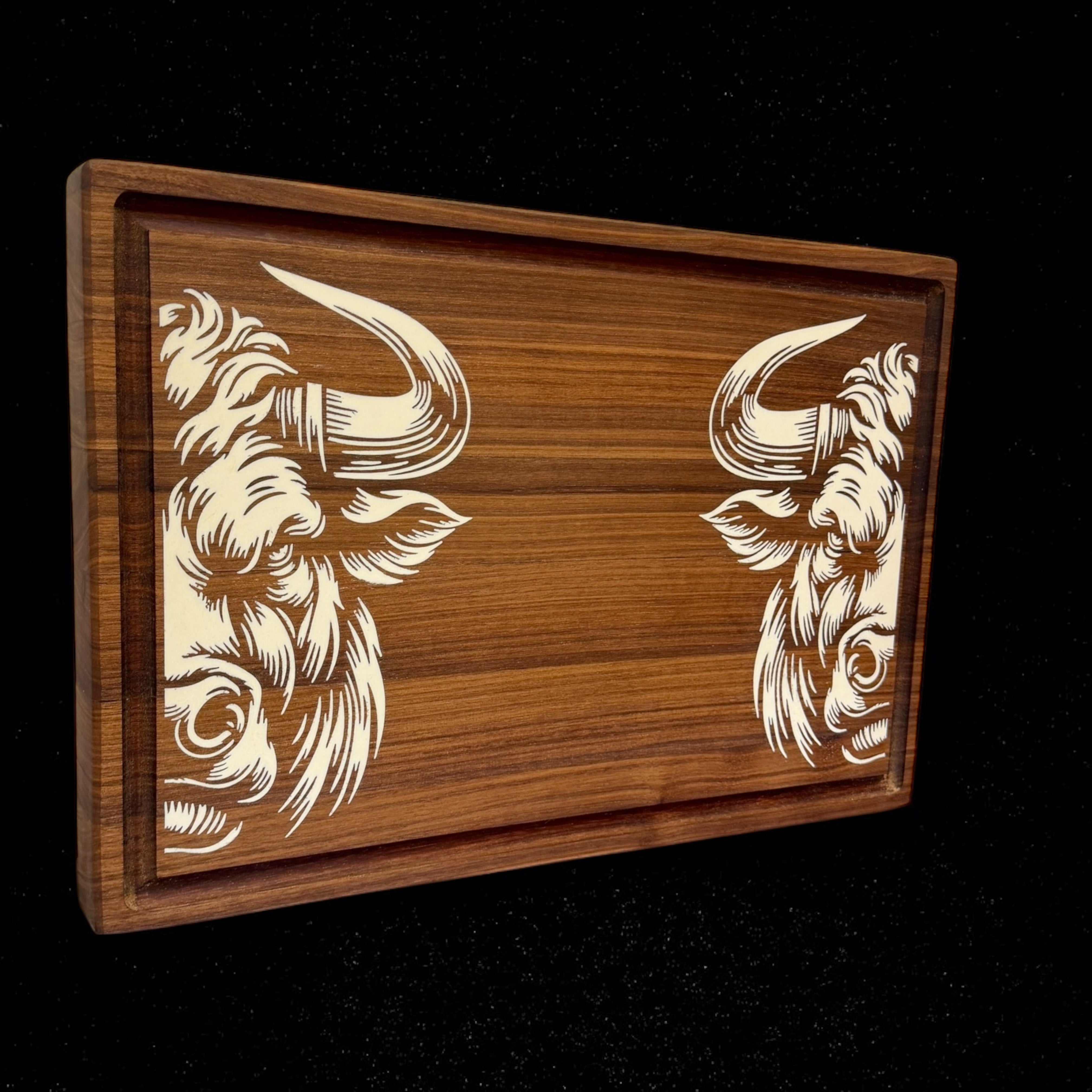 IN STOCK & READY TO SHIP | 18 x 12 x 1.75 The Bull Block - Black Walnut Hardwood White Resin Inlay